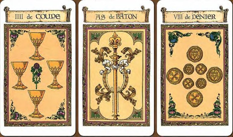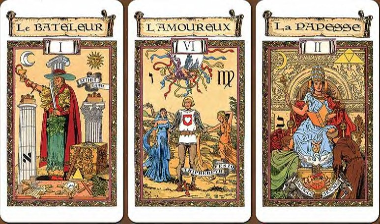 The deck was conceived by Jean-Louis Victor and illustrated by Willy Vassaux. Victor has authored several books on the Tarot and other esoteric subjects, and directed a seven-volume encyclopedic work titled The Universe of Parapsychology and Esoterism. The book which comes with the set introduces the decks theme (1): |